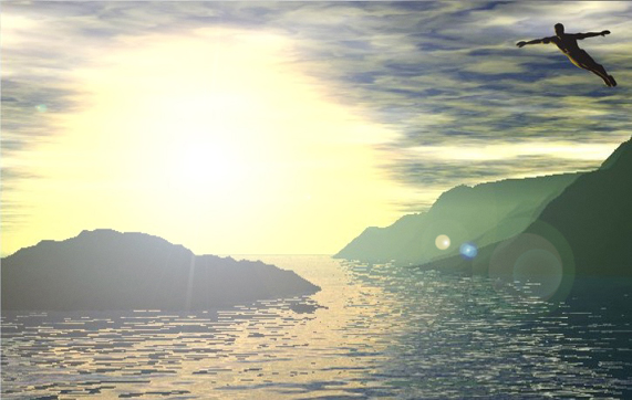 I suppose everyone has dreams about flying. This is my attempt to capture the feeling I get during mine. It was created with TrueSpace2, Poser2, Bryce2 and Photoshop.